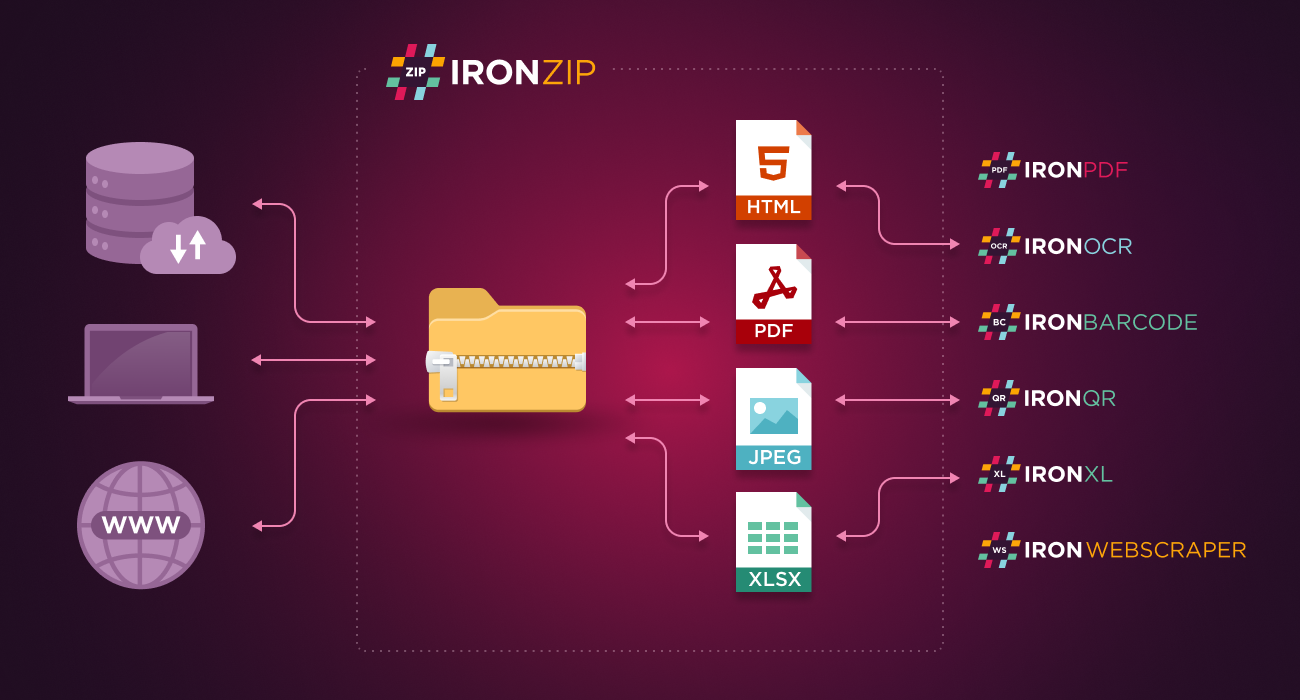 IronZIP seamlessly integrates with other powerhouse products in our suite, such as IronPDF and IronOCR, combining the strength of IronZIP's file manipulation with advanced PDF, OCR, and other functionalities.